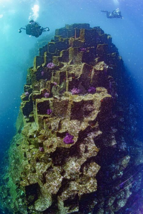 特にここツナキリの水中柱状節理は規模も大きくその形状もとても特徴的で格好良いんです!