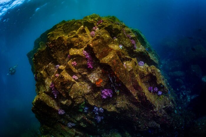 基本的には30〜40mまで落として魚影や魚種を楽しんだ後、柱状節理は浅いのでそこで減圧しながらじっくり地形を楽しんでいただくガイドスタイルとなります。