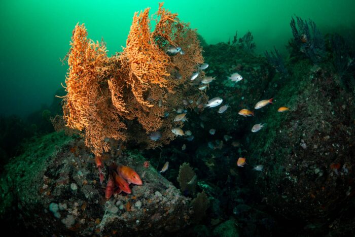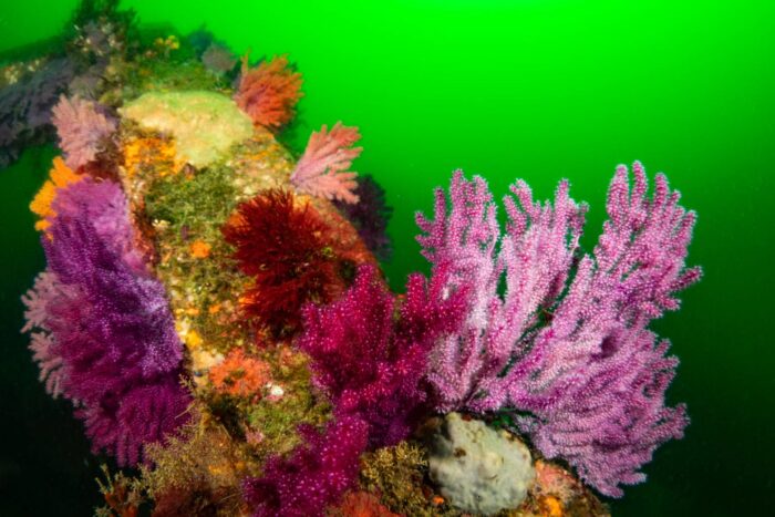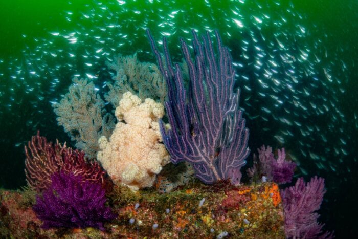 そしてこの薄暗さが好ましいのかプランクトンを捕食しているのか、このような環境ではソフトコーラルが